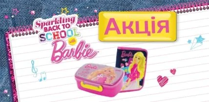 Приймайте участь в акції від ТМ Барбі, що приурочена до початку навчального року. Придбайте іграшку ТМ Барбі вартістю від 349 грн. та отримайте у подарунок пенал або ланч-бокс Барбі.
