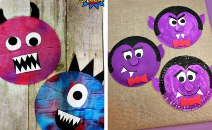 Приготовьте одноразовые бумажные тарелки, краски и фломастеры. Этих заготовок нужно сделать как можно больше, чтобы хватило всем детям. Задача - разукрасить тарелки в виде хэллоуиновских героев. Это может быть монстрик, првидение, или "фонарь Джека".
