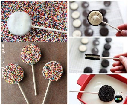 Самое обычное печенье-сэндвич может отлично украсить новогодний стол 2020. Между двумя половинками печенья вложите деревянную шпажку, окуните печенье в расплавленный шоколад или помадку. Украшения — на ваш вкус.