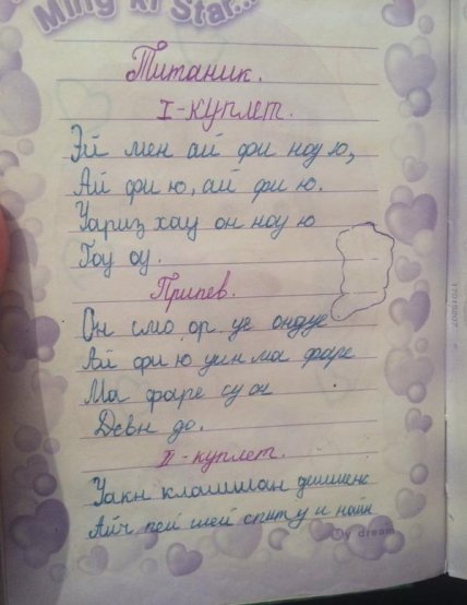 Это напомнило нам мэм, давно ходивший на просторах интернета о "лихих 90-х", когда школьники в своих дневничках записывали песни тексты англоязычных песен на русском.