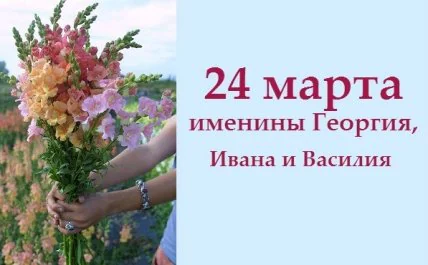 День ангела сегодня, 24 марта, празднуют Василий, Георгий, Ефим, Иван. Отправьте друзьям смс-поздравление с Днем ангела 24 марта.
