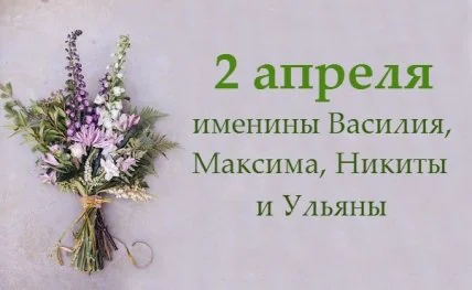День ангела сегодня, 2 апреля: Василий, Виктор, Герман, Иван, Максим, Никита, Сергей, Александра, Клавдия, Мария, Прасковья, Светлана, Ульяна. Отправьте друзьям смс-поздравление с Днем ангела 2 апреля.