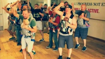 Неделю назад в Facebook опубликовали видео, герои которого - папы, танцующие с детьми в рюкзаках-переносках. Видео сняли в танцевальном зале студии GroovaRoo Dance в Сан-Диего. Студиюю создавали для того, чтобы женщины после появления ребенка могли заниматься физическими упражнениями, находясь рядом со своими малышами.