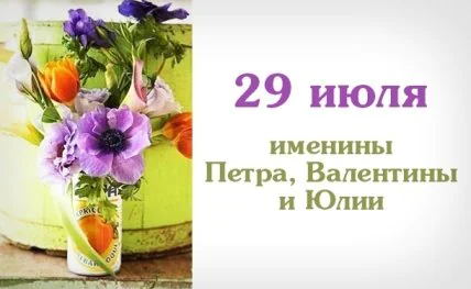 День ангела сегодня, 29 июля: Иван, Павел, Петр, Федор, Алевтина, Валентина, Юлия, Яков. Отправьте друзьям смс-поздравление с Днем ангела 29 июля.