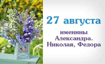 День ангела сегодня, 27 августа: Александр, Алексей, Аркадий, Василий, Владимир, Ева, Евдокия, Матвей, Николай, Семен, Федор. Отправьте друзьям смс-поздравление с Днем ангела 27 августа.