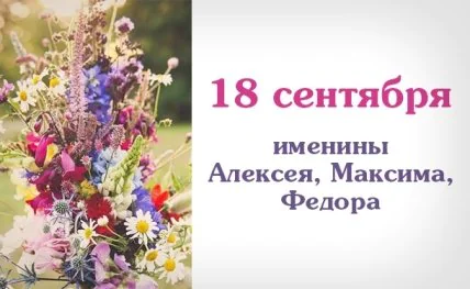 День ангела сегодня, 18 сентября: Александр, Алексей, Афанасий, Глеб, Давид, Елизавета, Ефим, Захар, Ираида, Максим, Раиса, Федор. Отправьте друзьям смс-поздравление с Днем ангела 18 сентября.