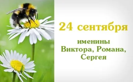 День ангела сегодня, 24 сентября: Виктор, Герман, Дмитрий, Евдокия, Ия, Карп, Лев, Николай, Петр, Роман, Сергей. Отправьте друзьям смс-поздравление с Днем ангела 24 сентября.
