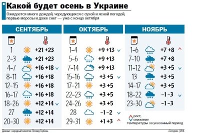 Если говорить о погоде на осень 2016, то в целом она радует хоть и прохладной, но в большей мере сухой погодой. Лишь в некоторых регионах, как это было в Одессе, стоит бояться наводнения в Украине 2016, а также ураганов в Украине 2016. На западной и южной территории Украины дожди пройдут в окрябре. В центральной Украине дождей не предвещается. Но в большей мере сейчас украинское общество обсуждает, готова ли Украина к зиме 2016-2017, и когда начнутся морозы в Украине 2016.