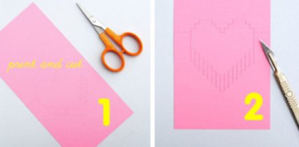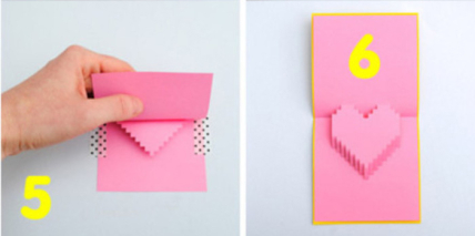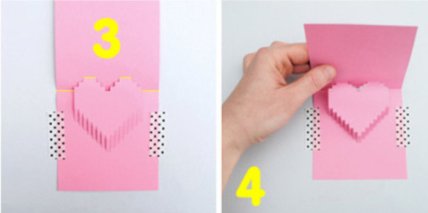 Теперь следуйте фото инструкции, как сделать 3D открытку с объемным сердцем