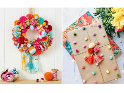 Когда дом украшен к Новому году, а елка наряжена самыми лучшими игрушками, остается лишь красиво упаковать новогодние подарки и сложить их под елкой. Чтобы сделать крутую упаковку подарка для детей и взрослых, вам тоже понадобятся помпоны. Прелестно, не так ли?
