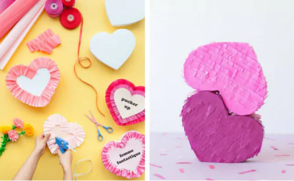 Если вам надели сердечки повсюду, следующую идея для вас. Гирлянды в виде бахромы всех оттенков розового цвета очень просто сделать своими руками, чтобы украсить класс на 14 февраля. По ссылке вы найдете еще один способ сделать гирлянду из гофрированной бумаги.
