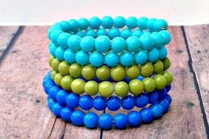 Для этого стильного браслета можно использовать цветные бусы, которые давно лежат без дела. Либо купить бусины нужных цветов в любом магазинчике для рукоделия. Также вам понадобится тонкая жесткая проволока, кусачки и круглогубцы.
