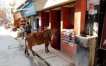Малышу Тимоти здесь нравится – достаточно всего нового, что можно исследовать и созерцать. Особое восхищение вызывает теленок, живущий во дворе геста и, время от времени, выходящий "пастись" на улицу – его можно даже, набравшись смелости, погладить по лицу и вблизи посмотреть в спокойные большие глаза. Нам приходится долго думать, как объяснить ребенку странный рацион теленка – парнокопытные в Индии питаются не только травой, но и любой органикой (пищевые отходы), посторганикой (бумага, картон, газеты) и некоторой неорганикой (полиэтиленовые кульки). Сцены питания коров на свалках не очень способствуют получению удовольствия от местных молокопродуктов.