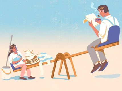 Даже сегодня, когда такое огромное количество женщин работает и зарабатывает, женщины по-прежнему тратят как минимум в два раза, а иногда намного больше мужчин, на работу по дому и уход за детьми.