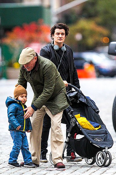 Из-за плотного графика работы сечас Миранда не может проводить с маленьким Флинном достаточно времени, поэтому на прогулки с ним ходит Орландо. На днях актер забрал сына, и они вместе с дедом Гарри Блумом гуляли по Нью-Йорку. Нагулявшись вдоволь, мужчины вместе с малышом направились пообедать в греческий ресторан.
