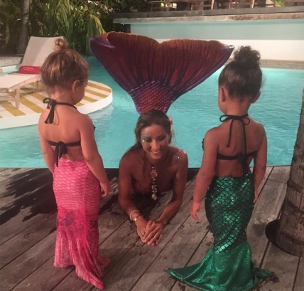Ким и Кортни, решили устроить для своих дочерей сказочный вечер и пригласили профессионального аниматор- русалку, которая устроила яркое шоу в бассейне. А для чтобы малышки прочувствовали тематику, им также прицепили «русалочьи хвосты».