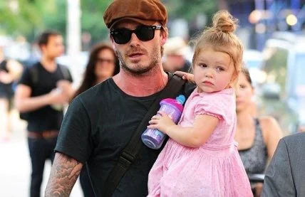 Дэвид Бекхэм сделал тату в честь рождения дочки. Имя Харпер футболист написал на левой ключице. В июле 2015 года он добавил к имени надпись «Pretty Lady». Также на шее у Дэвида не так давно появилась татуировка «Buster» в честь сына Бруклина, которого Бекхэм всегда называл Бастером.