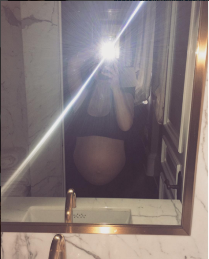 На последней фотографии в инстаграме Ким Кардашьян еще с круглым животом : "Готова, когда бы ты ни появился".>