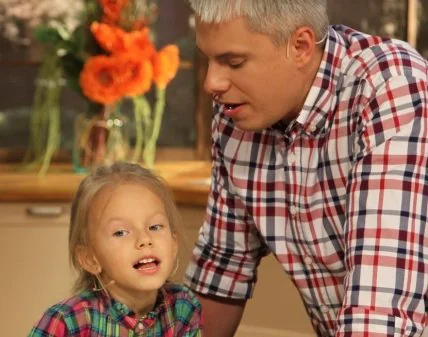 Двое пап – Доманский и Дромов – пришли на съемку программы со своими детьми, Кирой и Сашей, чтобы приготовить и попробовать блюда, полезные для детей. И вкусные. Так как мы готовили все то, что Кира любит, ей все понравилось. Более того, я увидел в ней задатки неплохой телеведущей.