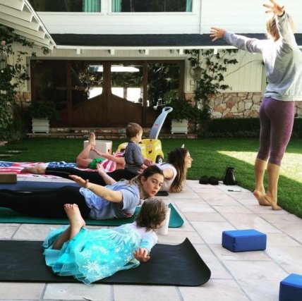 Супруга знаменитого актера Алека Булдуина Хилари также занимается йогой с малышкой Кармен, которая повторяет за мамой все движения.