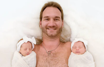 Месяц назад известный писатель и мотивационный оратор из Австралии Ник Вуйчич стал многодетным отцом. Новорожденные близнецы Оливия и Элли стали третьим и четвертым ребенком в его семье.