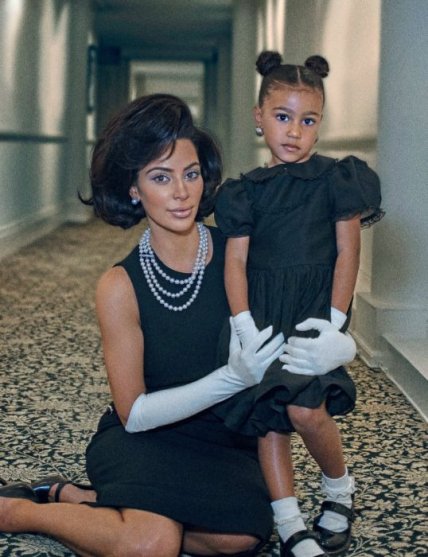 Вообще Ким Кардашьян любит примерять на себя образы известных женщин. Она переодевалась в Шер и Мадонну. А в фотосессии для глянцевого журнала Ким Кардашьян позировала вместе с дочерью и примерила на себя образ Джеки Кеннеди.