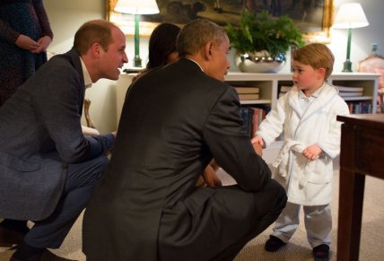 Принц Джордж встречает гостей Барака и Мишель Обаму в 2014 году