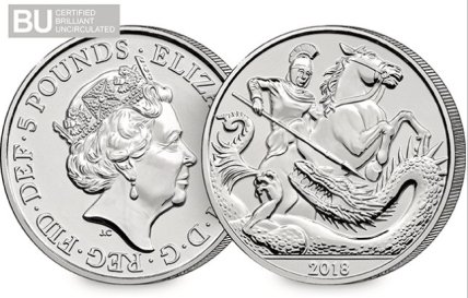 На ней изображен святой Георгий – покровитель принца и Великобритании. А на аверсе - портрет прабабушки.