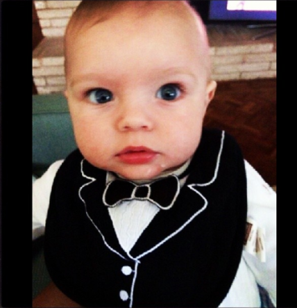 А на днях Джош в своем Инстаграме выложил чудесное фото малыша в слюнявчике джентельмена и подписал: