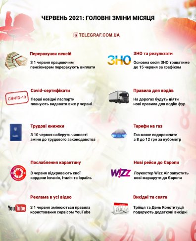 "Телеграф" зібрав зміни, які чекають українців у першому місяці літа.