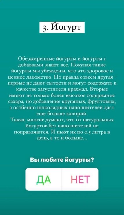 - Йогурт. Знежирені йогурти і йогурти з добавками — не дають ситості, мають велику кількість цукру, і мало того, "мають" велику кількість калорій.