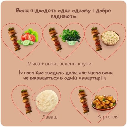 Кулінарний блогер та експерт з харчування Наталія Мазурик зазначає, що м’ясний шашлик у жодному разі не можна поєднувати з лавашем та картоплею.