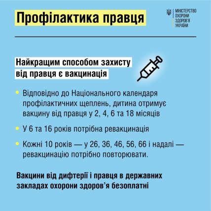 Найкраще запобігти правцю може лише вакцинація. Додамо, що повторне щеплення від цієї хвороби варто робити через певний проміжок часу.