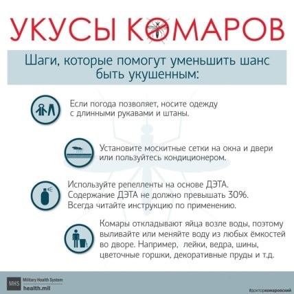 Відомий український лікар Євген Комаровський у своєму Instagram дав кілька простих, але дієвих порад щодо захисту від цих комах. Для зручності правила поведінки з "кровопийцями" він розмістив у вигляді зрозумілої інформографіки.