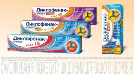 Фармацевтична компанія "Здоров’я" виробляє лінійку препаратів Диклофенак-Здоров’я у формі гелю та спрею місцевої дії із вираженою протиревматичною, знеболювальною, протизапальною дією. Це Диклофенак-Здоров’я гель 10мг/г по 30 г або по 50 г у тубі; Диклофенак-Здоров’я форте гель 30 мг/г по 50 г у тубі; Диклофенак-Здоров’я ультра гель 50 мг/г, по 50 г або по 100 г тубі. А також Диклофенак-Здоров’я ультра спрей нашкірний, розчин, 40 мг/мл по 30 мл або по 50 мл.