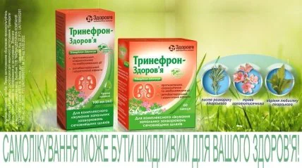 Істотну допомогу у профілактиці та комплексному лікуванні таких захворювань може надати препарат Тринефрон-Здоров’я виробництва компанії "Здоров'я". Його актуальність обумовлена кількома причинами. Він має рослинну основу: до складу входять трава золототисячника, листя розмарину лікарського та корінь любистку лікарського. Кожен з них має багатий вміст біологічно активних речовин, що проявляється у протизапальній, антиоксидантній, спазмолітичній та знеболювальній дії.