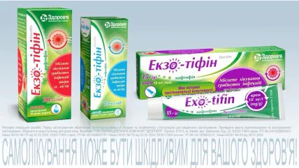 Але вихід знайдено — це сучасний протигрибковий лікарський препарат Екзо-тіфін, що випускає фармацевтична компанія "Здоров'я" на ринку України, у трьох формах випуску – нашкірні спрей та розчин, а також крем.