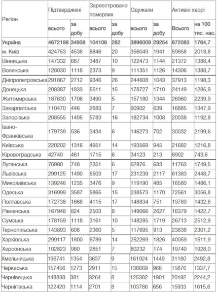 Тем временем наибольшее количество смертей зарегистрировано в Днепропетровской области (26), Киеве (20), Львовской и Полтавской (по 17) областям.