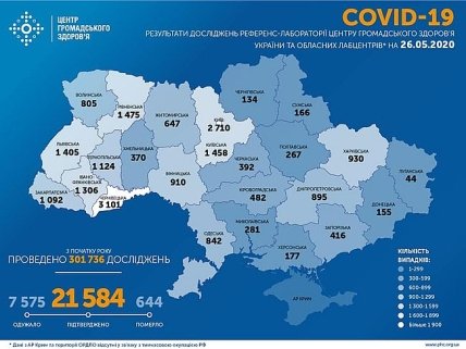 Как сообщалось, всего в Украине за минувшие сутки зафиксировано 339 новых случаев заболевания коронавирусной болезнью COVID-19, 21 человек из числа ранее заболевших скончался, 341 выздоровели. В настоящее время в Украине COVID-19 болеет 13 365 человек, что на 23 меньше, чем сутками ранее. Количество инфицированных нарастающим итогом составило 21 584 человека (1 581 ребенок , 4 183 медиков), из них - 644 летальных, 7 575 человек (в т.ч. 1913 медиков) выздоровели.