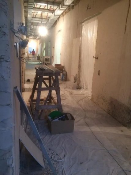 Медсестра этой больницы Юлия Витковская выложила фотографии, на которых видно, что только часть двухэтажного корпуса готова к приему пациентов. Половина же еще стоит в строительных руинах.