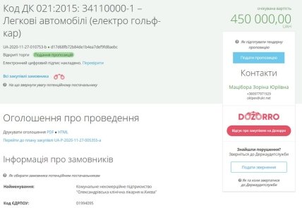 Александровская больница в Киеве, где лечат много больных с коронавирусом COVID-19, предложила тендер на закупку гольф-кара за 450 тысяч гривен при дефиците 12 миллионов в бюджете