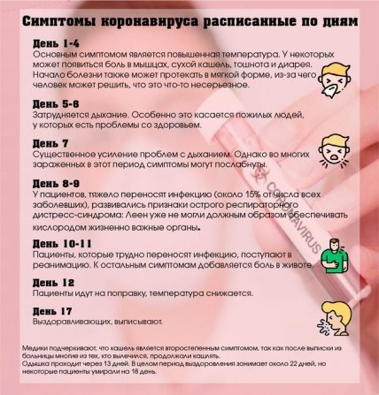 Прежде чем проинформировать Вас о симптоматике по днях, отметим, что признаки коронавирусного заболевания COVID-19 можно легко спутать с гриппом А или ОРВИ.