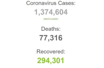 С начала эпидемии коронавируса в мире зарегистрировали 1 430 453 случаев заражения, 82 тысячи смертей и 300 тысяч людей, которые выздоровели после инфицирования.