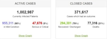 Фото: worldometers.info/coronavirus
