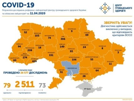 В Украине зафиксировано уже 2511 случая заболевания COVID-19, из них 73 – летальных.