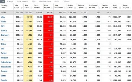 Фото: worldometers.info/coronavirus, данные по состоянию на 23:45 14 апреля по Киеву