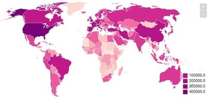 Из них значительная часть приходится на США (25 794), Италию (21,067) и Испанию (18 056).