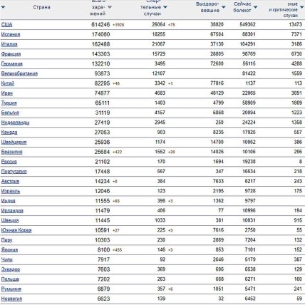 В частности, в США 614 246 случаев заболевания коронавирус, в Великобритании 93 873, Франции 143 303, Испании 174 060, Турции 65 111.