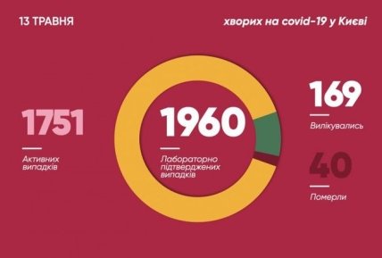 В Киеве за сутки коронавирусом заболели 30 человек, два человека умерли. Всего в столице 1960 подтвержденных случаев COVID-19, 40 человек умерли, 169 выздоровели.