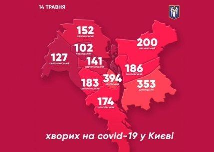 Заражение коронавирусом по областям Украины на 14.05.2020